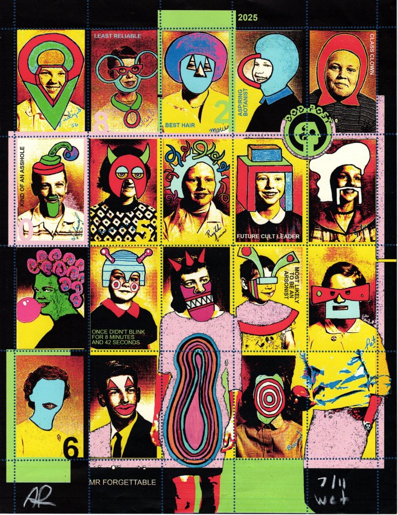 Nonlocal Variable’s mail art from the 1990s – resumed in 2023 – and generous friends’ mail art artwork from the global mail art network.