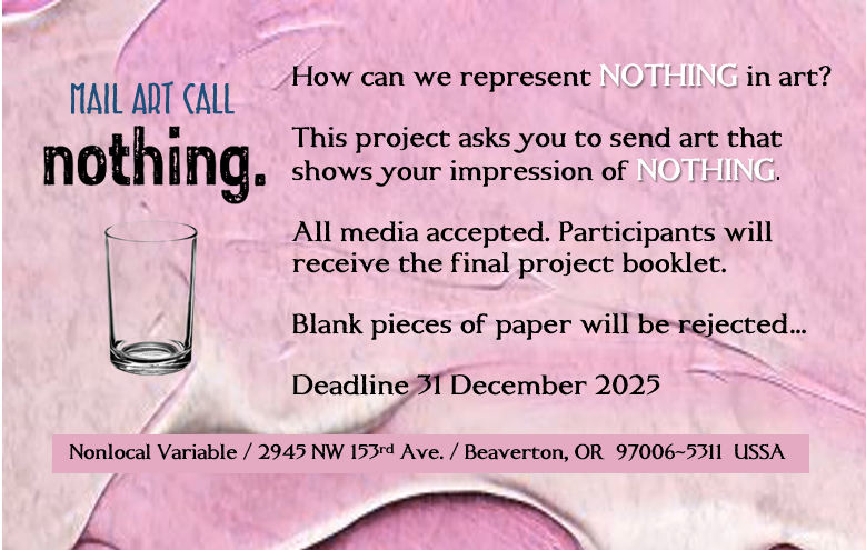 A new Mail Art Call for 2025, all about Nothing. See details below. Documentation for participants will arrive in January 2026.